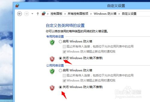 在自定义设置界面,将家庭或工作(专用)网络位置设置和公用网络位置设置下的Windows防火请阻止新程序时通知我前的对勾取消掉,最后点击确定。
